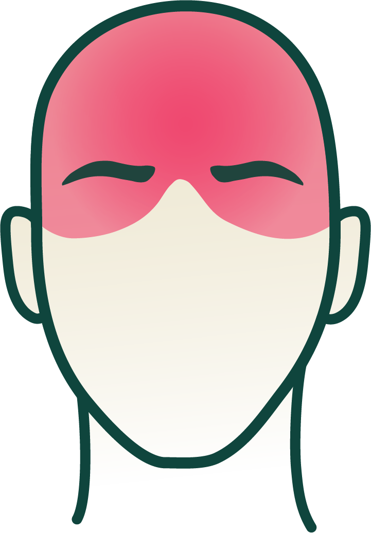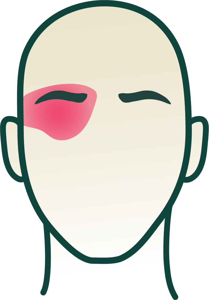 Smerten sitter ofte i tinningen, pannen, bak øynene eller som et lokk over hele hodet. Den blir ofte værre utover dagen eller i stressende omgivelser.